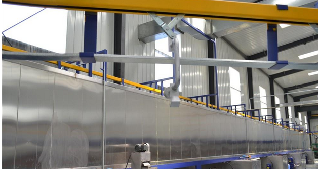 3. 噴淋式前處理設備組成:一般由棚體、槽體、排風系統、泵及噴淋系統、送風系統、懸鏈保護裝置、油水分離裝置、熱交換系統、除渣系統、酸洗系統、純水發生系統、溫控系統、電控系統等組成;